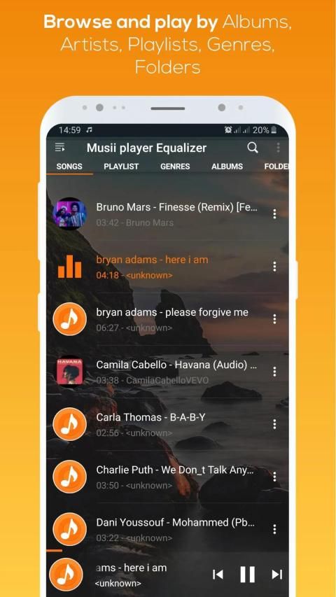 browse through quick search all music files, support all music & audio file formats and show your tracks in your phone by artists, albums, songs, folders, genres and you can create playlist that plays music you love at one place.