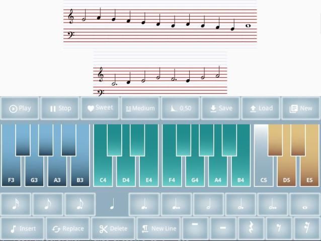 Music is a sequence of Musical notes. Each note has frequency and duration. First select the duration (time) of the note. Then select the Piano key and insert the note in to Music editor. Using Music Composer any song can be created and played.