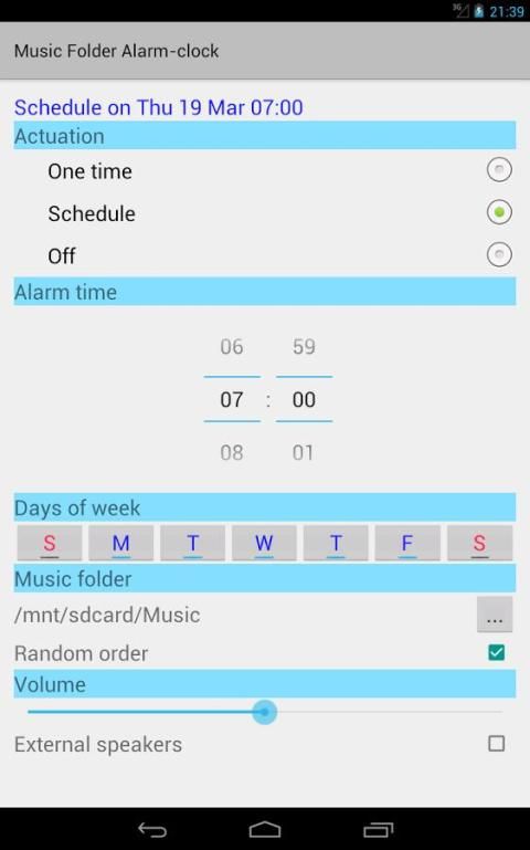 अपने पसंदीदा संगीत की ध्वनि के साथ जगा। बस रचनाओं के साथ फ़ोल्डर का चयन करें, अलार्म घड़ी साउंडट्रैक एक के बाद एक, या हर बार एक नया आदेश निभाता है। आप धीरे जाग, और सोने और जागने की सीमा के माध्यम से संगीत की अद्भुत आवाज़ सुन।
