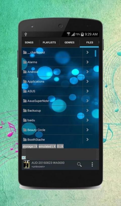 संगीत खिलाड़ी न केवल कलाकारों या एल्बम पर आधारित है, लेकिन यह भी फ़ोल्डर संरचना पर आधारित है। संगीत प्लेयर आप सेकंड में सभी संगीत फ़ाइलों को खोजने के लिए मार्गदर्शन करेंगे
