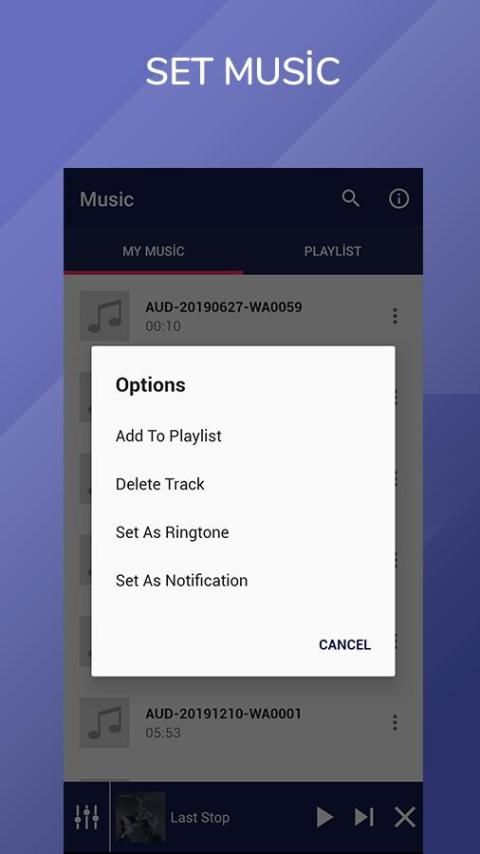 You can set the desired song as alarm or phone ringtone. You can increase the music sound, increase the bass level. You can compile your favorite music in the folder.