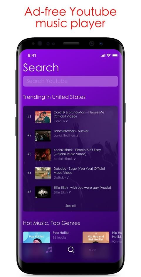 - यूट्यूब से किसी भी ट्रैक और प्लेलिस्ट को बिना किसी सीमा के और विज्ञापनों द्वारा कोई बाधित वीडियो स्ट्रीम करें