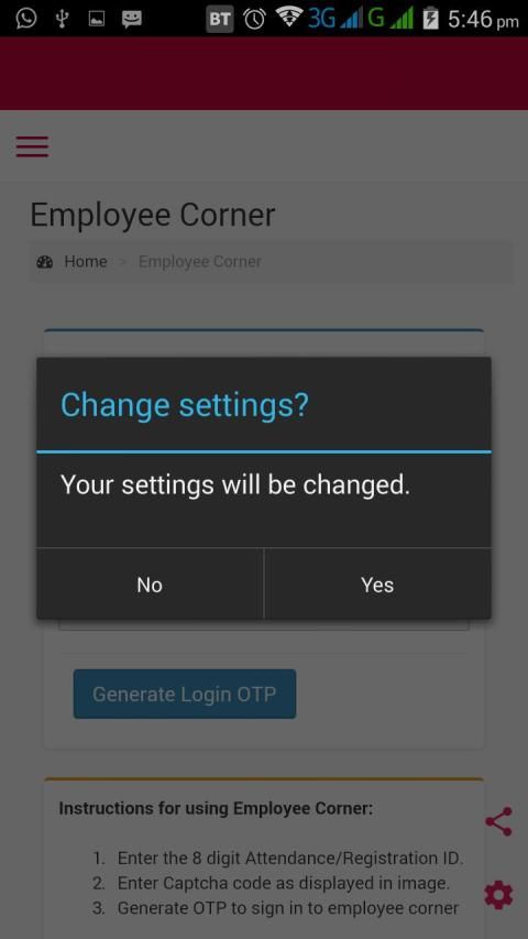 यह कर्मचारियों की सुविधा के लिए सीधे अपने उपस्थिति आईडी दर्ज और पासवर्ड में एक बार लॉग उत्पन्न करने के लिए।