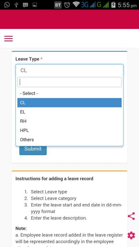 This application can be used by the government employees or skill development candidates to check out their office attendance and to add and view different kinds of leaves and tours etc. A nodal or reporting officer can also log in by using his/her Login ID and password.