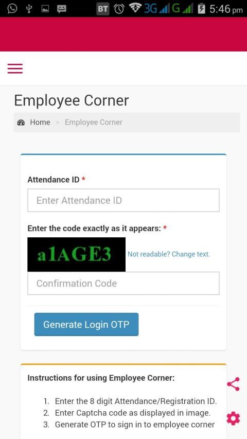 OTP उत्पन्न एक कैलेंडर दिन के लिए मान्य होगा, कर्मचारी एक ही OTP उपयोग कर सकते हैं एक दिन में कई बार कर्मचारी कोने में प्रवेश करने की।