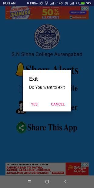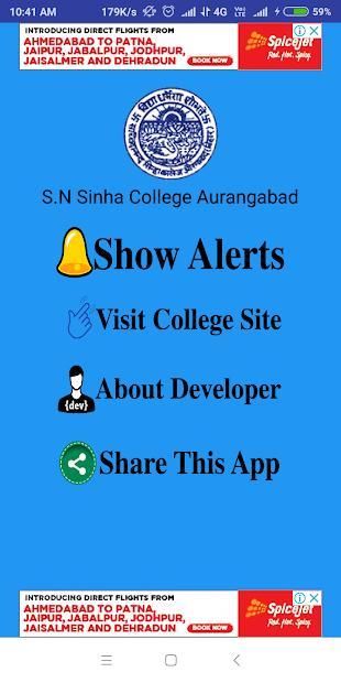 This App is developed by coder group for informing the all students,parents which are related to S.N Sinha colleege Aurangabad (Bihar).Such as admission alerts,exam notices,important dates (FormFill,Registration..)etc.this app is no require to take any type of access from your phone.app will be run only internet connected mobile phone. this app contain some ads(google admob service).