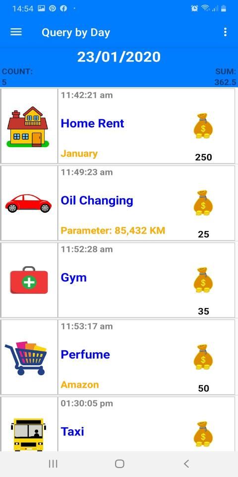 • By using the application you can save all your daily expenses, and you can inquire about daily, monthly, or annual expenses, or by category.