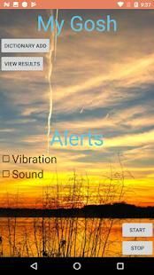 My Gosh is a powerful tool to help recognize speech words or patterns and provide tracking, vibration alerts, and alarms. To get started, simply click on dictionary add and new entry and speak what it is you want recognized. Once it appears on the center click Confirm Entry and HOME to return back to the main menu. Here you can select whether to have vibration or alarm alerts and click start to begin the listening. Once done, it is possible to view a list of results in the view results section. Clicking on a result brings you back to the home screen.