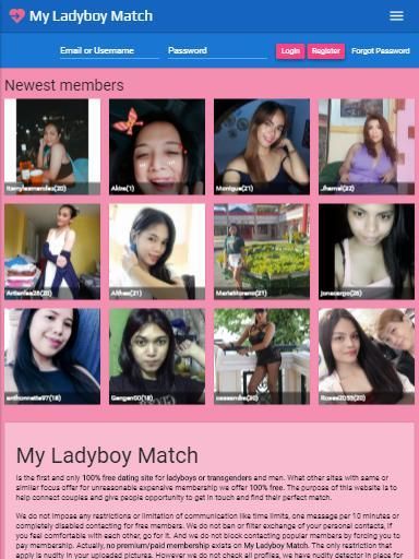 A 100% free dating app for Ladyboys, transgenders or kathoeys and their admirers.