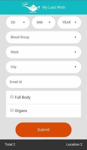 Any individual who wants to register his or her last wish for donating their organs after death can register with our app – MY LAST WISH. There are various options that we have created for Body Donation, Organ Donations, etc. Individual can pre select whatever is the wish and can also attach a text, photo, or video, which can be searched and viewed by their family members or friends. After death, this msg serves as a reference material and the last wish can be executed.