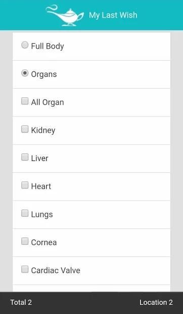 कोई भी व्यक्ति जो मृत्यु के बाद अपने अंग दान करने की अपनी आखिरी इच्छा पंजीकृत करना चाहता है, वह हमारे ऐप के साथ पंजीकरण कर सकता है - मेरा आखिरी इच्छा। बॉडी दान, अंग दान, इत्यादि के लिए हमने कई विकल्प बनाए हैं। व्यक्तिगत जो कुछ भी इच्छा है उसे चुन सकते हैं और एक टेक्स्ट, फोटो या वीडियो भी संलग्न कर सकते हैं, जिसे उनके परिवार के सदस्यों या दोस्तों द्वारा खोजा और देखा जा सकता है। मृत्यु के बाद, यह संदेश संदर्भ सामग्री के रूप में कार्य करता है और आखिरी इच्छा को निष्पादित किया जा सकता है।
