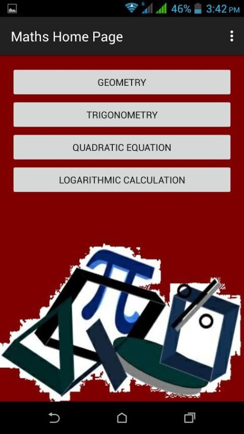 An app for solving Geometry, Trigonometry, Logarithmic problems and Quadratic Equations problem by a simple tap.