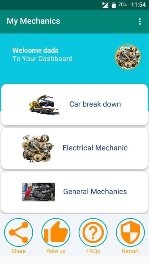 This a repair app that helps you to easily access to the nearby break down and professional mechanics any time any where you are without the manual way of locating them for their services. This connects the owner of cars to the right mechanic to attend to the needs all over at any time the need arise. It helps car owners in areas,town or city they are not well conversant with. It allows the to easily locate qualified mechanic in that location at button click.