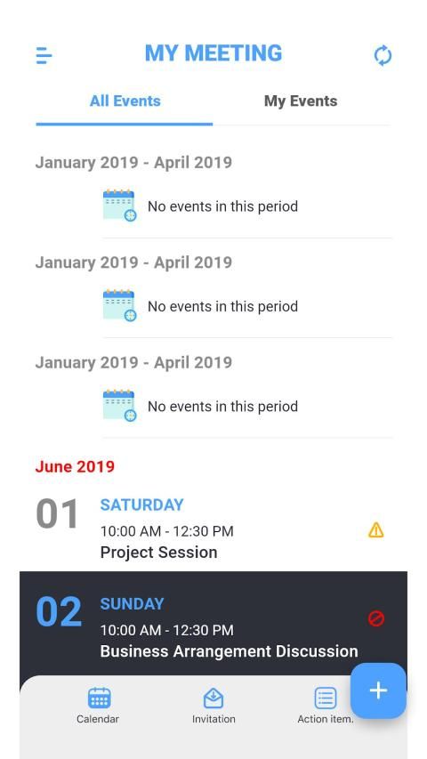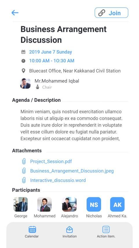 The users could also comment on the action items to provide their inputs. The meetings under your chair are listed in a separate tab with synced content of both Google calendar and Outlook calendar.