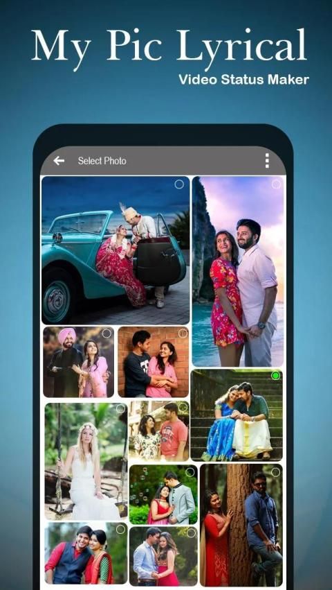 Just pick your lovely pics and select a shape if you want to make it prettier. Select any lyrical Story video and add your image to video easily.