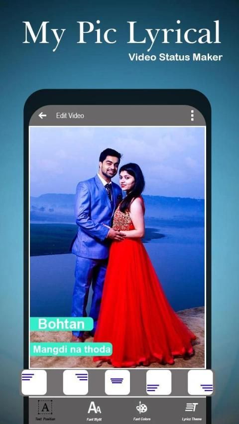 Make and share lovely My Photo Lyrical Video - Auto Lyrical Video - Photo Music video within a minute with your personalized. Create your own music video with your personalized pictures and text. Just pick your images and select best lyrics and decorates your photos. You are done with awesome video.
