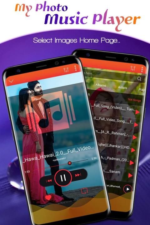 अनुकूलित अपने परिवार, दोस्तों, प्रेमियों, स्वयं कैमरा चित्रों, अपने पसंदीदा सेलिब्रिटी स्टार, प्यारा पालतू जानवर, एनिमेटेड छवियों, सुंदर और अद्भुत दृश्यों लिया यात्राएं जाना, एथलीट, आदि है कि पसंदीदा शैली के साथ मुख्य स्क्रीन। डाउनलोड करें और अपने म्यूजिक प्लेयर को अनुकूलित।