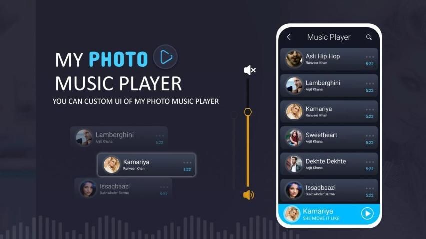 - You can create custom music player or Custom UI of My Photo music player