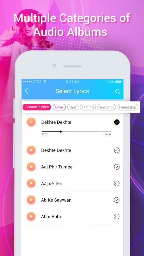 have great collection of songs lyrics select your favourite lyrics and add them on your pictures and make lyrical video of your own pictures and share your feelings with your love using your photo lyrical video. Create 30 seconds lyrical video. 30 second video maker. Share your created video via social media and its sure your words touch your loved ones heart by this video.