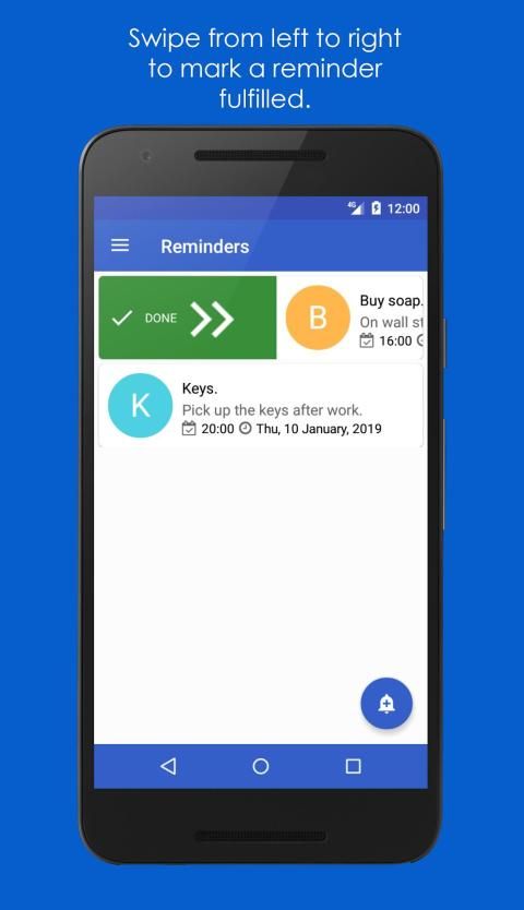 अनुस्मारक को पूर्ण और सक्रिय में विभाजित किया गया है, वे सरल इशारों के लिए धन्यवाद बनाने, हटाने और निष्पादित करने में आसान हैं!