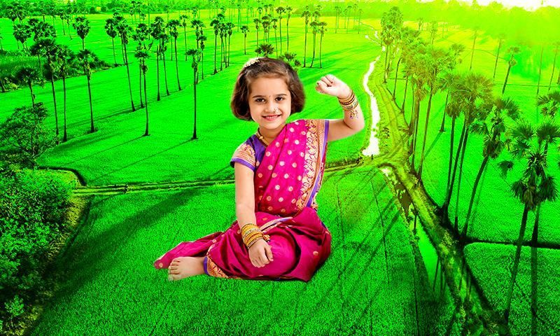 -> मेरा गाँव फोटो फ्रेम फिट करने के लिए फोटो को स्केल, ज़ूम इन, ज़ूम आउट, रोटेट या ड्रैग करें।