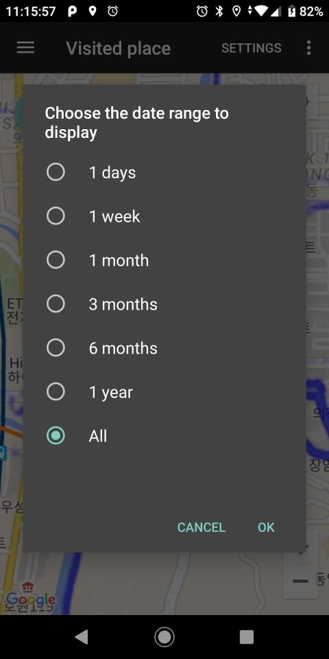 -1 दिन से 1 वर्ष या मानचित्र पर पूर्ण स्थान