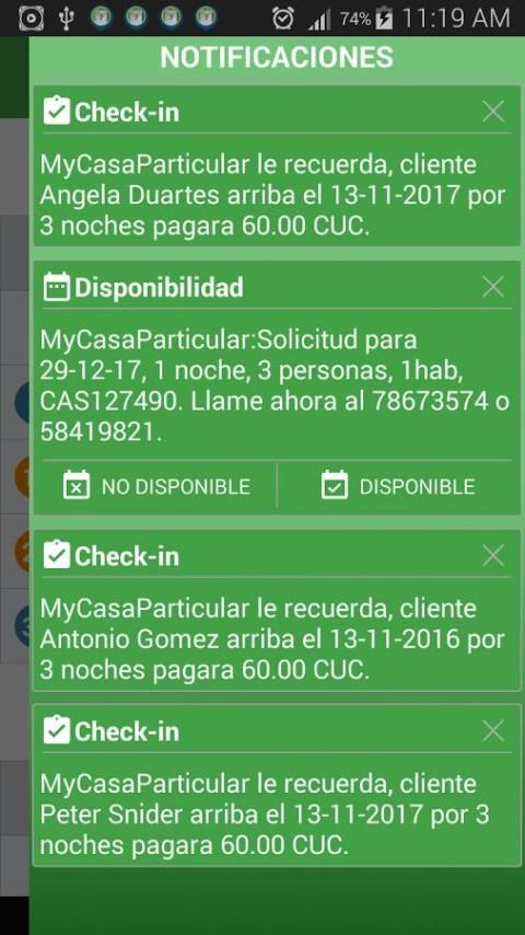 क्योंकि यह उन में वास्तविक समय अनुप्रयोगों उपलब्धता के पास जवाब करने के लिए अनुमति देता है MyCasaRenta, MyCasaParticular भीतर निजी घरों के तौर तरीकों त्वरित रिजर्व और तत्काल रिजर्व में पाए लिए आदर्श आवेदन है: अगर एक वाई-फाई नेटवर्क से जुड़े इंटरनेट सेवा, आवेदन कनेक्शन के इस प्रकार का पता लगाता है और कनेक्शन के इस प्रकार का उपयोग कर डेटा सिंक्रनाइज़; yWhen एक वाई-फाई नेटवर्क से कनेक्ट नहीं कर रहे हैं, तो आवेदन एसएमएस प्रकार का उपयोग कर डेटा सिंक्रनाइज़ करता है। इस MyCasaParticular के भीतर किसी भी मालिक लगभग किसी भी परिस्थिति में इसकी उपलब्धता प्रबंधन कर सकते हैं बनाता है।