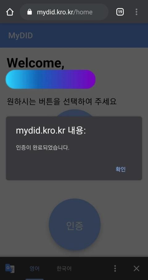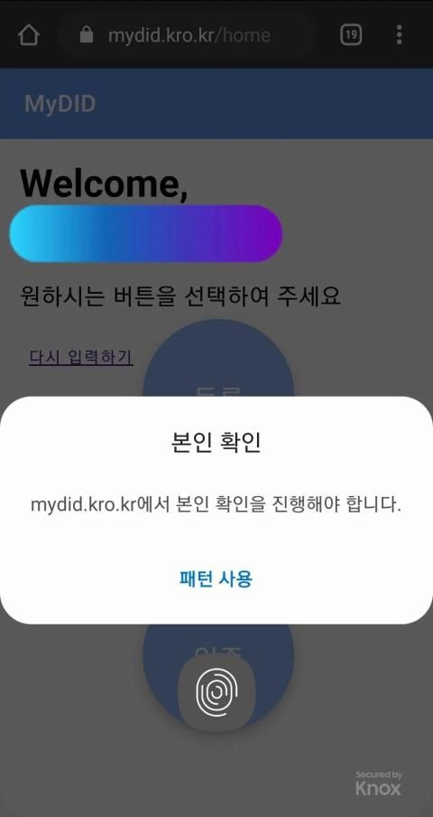 2) MyDID 앱 or 웹에서 MyDID 지문 인증을 하여 로그인 한다.
