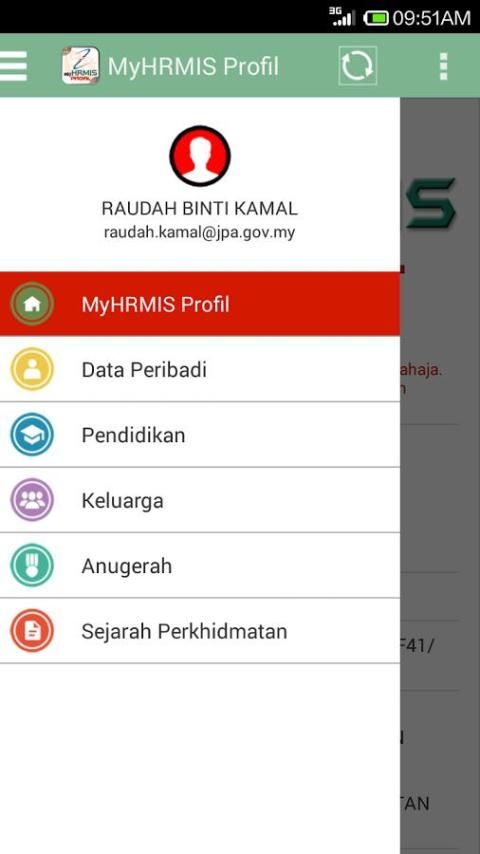 Fungsi Dalam Aplikasi MyHRMIS प्रोफाइल: