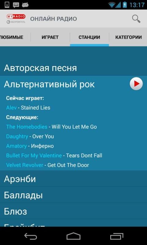 ऑपरेटिंग सिस्टम एंड्रॉयड के लिए नि: शुल्क मोबाइल एप्लिकेशन यूक्रेनी रेडियो ऑनलाइन myRadio.ua.