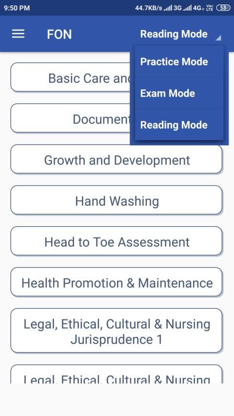 2. अध्ययन के 3 मोड प्रदान करें - अभ्यास, पढ़ना और परीक्षण (प्रश्नोत्तरी)