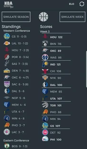 एनबीए सीजन सिम्युलेटर आपको डेटा विज्ञान का उपयोग कर आने वाले राष्ट्रीय बास्केट बॉल एसोसिएशन सीजन का सटीक अनुकरण और भविष्यवाणी करने की अनुमति देता है। सिम्युलेटर 2018 सीजन के प्रत्येक मैच के नतीजे की भविष्यवाणी करने के लिए टीम की एलो रेटिंग का उपयोग करता है और यह निर्धारित करता है कि अंततः कौन सी टीम एनबीए फाइनल जीत जाएगी!