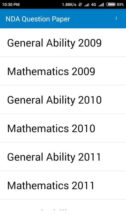 राजग पिछले साल पत्रों। अनुप्रयोग एनडीए परीक्षा के पिछले 7 साल प्रश्न पत्रों में शामिल हैं।