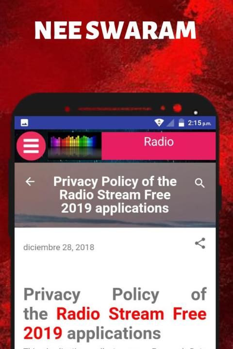 NEE SWARAM Live Free FM and AM radio is optimized for 3G, 4G and Wi-Fi networks