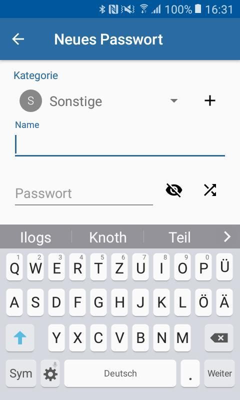 3. हरी '+' प्रतीक दबाकर अपने पासवर्ड जोड़ें।