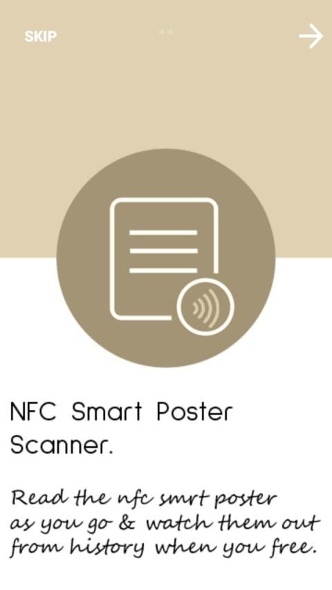 NFC Smart Poster is an free, simple and intuitive app which allows you to read NFC smart posters on go and stores them into recently tapped items(history). You could open them and find out when you free.
