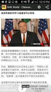 इस एप्लिकेशन को आप देख सकते हैं और दैनिक चीनी एनएचके वर्ल्ड द्वारा प्रदान की खबर पढ़ने देता है और यह नि: शुल्क है!