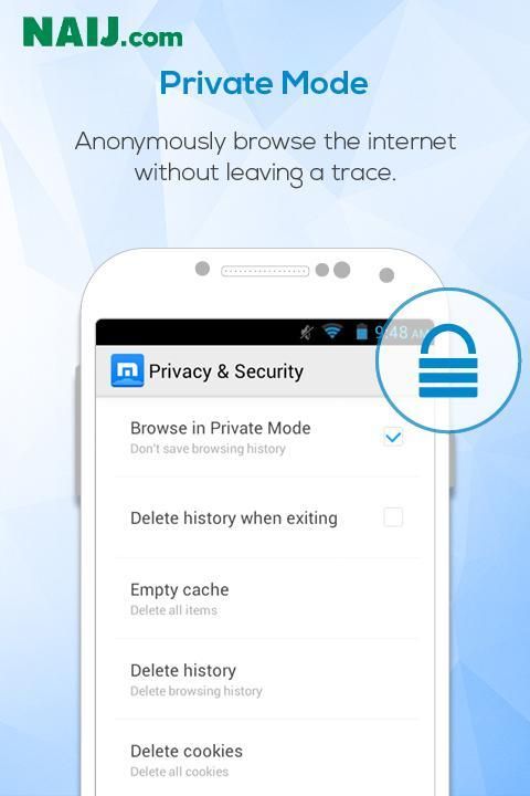 NAIJ web browser developed by Maxthon is one of the highest rated browsers for Android today. Rated higher than some of the other browsers on the market, such as Google Chrome, Mozilla Firefox, Opera, UC Web, Opera Mini, IE (Internet Explorer), Dolphin, UC Web & Boat. Download Maxthon today and you'll be convinced it is the best web browser you've ever used.