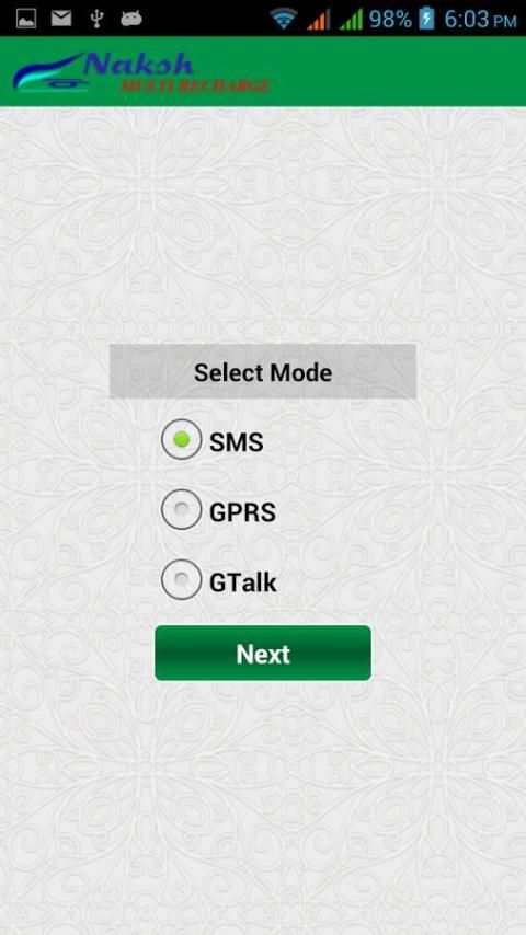 इस आवेदन (जीपीआरएस के माध्यम से) एसएमएस, जीपीआरएस, Gtalk के माध्यम से किसी भी रिचार्ज प्रवेश द्वार के लिए रिचार्ज अनुरोध भेजने के लिए प्रयोग किया जाता है।