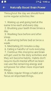 यह एप्लिकेशन इच्छा कैसे बढ़ा सकते हैं या बढ़ावा देने के मस्तिष्क power.This एप्लिकेशन हर किसी के लिए विकसित किया गया है के बारे में जानकारी को दर्शाता है। इस ऐप्लिकेशन में निम्नलिखित सुविधा जोड़ दिया गया है अर्थात