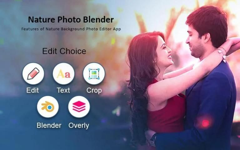 Nature photo blend Overlay Photo App Make your normal daily photos more interesting with ease, just select a picture from your gallery or capture from camera and mix this picture with our existing stunning picture collection or choose another photo from camera/gallery and blend them together to get an amazing result.
