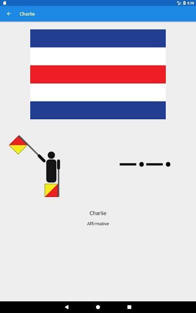 You will learn numerical and alphabetical flags. Each card additionally contains semaphore flags and Morse code. Also you always may take a quiz and see your progress. Enjoy.