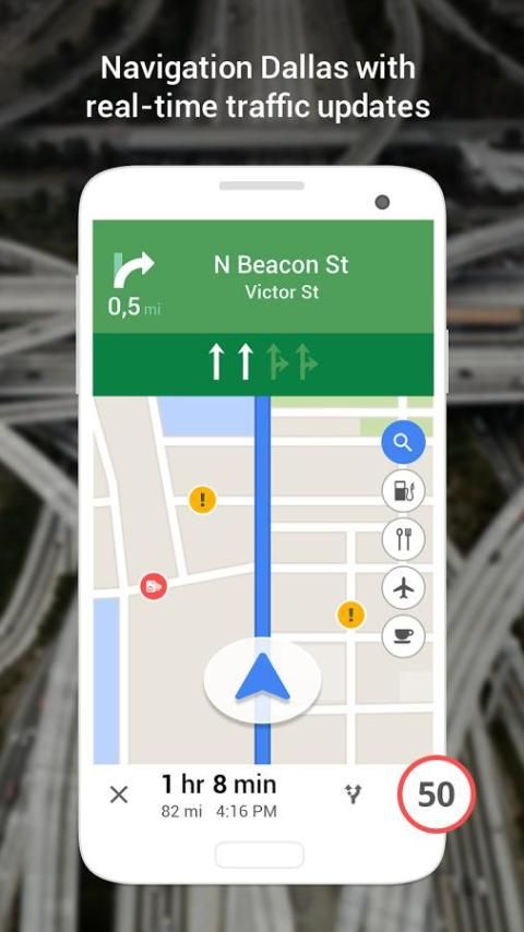 नेविगेशन डलास मानचित्र और यातायात app आइकन चल किसी भी स्क्रीन से अपने डिवाइस पर एक साथ एक नल शॉर्टकट app है। स्क्रीन जो भी आप वर्तमान में उपयोग कर रहे हैं नेविगेशन आइकन अभी भी अपने फोन के स्क्रीन पर शीर्ष स्तर पर पहुँचा जा सकता है। तक पहुँचने नेविगेशन आसान कभी नहीं रहा। एप्लिकेशन खोलें अपने गंतव्य दर्ज करें और अपने ड्राइव का आनंद लें।