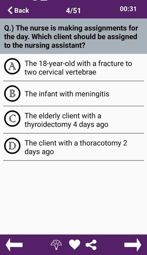प्रश्न उम्मीदवारों जो NCLEX परीक्षा लिखा और बीत चुके हैं से निकाले जाते हैं।