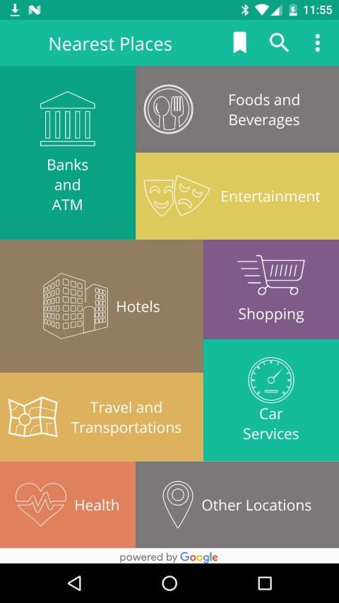 Nearest Places offer you a fixed list of places categories contain more than 70 category, You can also search for locations by keyword.
