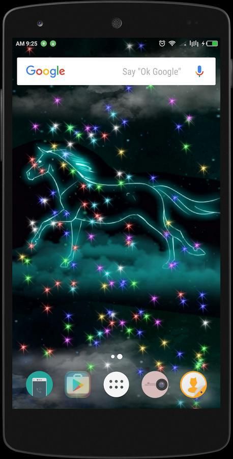 >> घोड़ा चारों ओर स्पार्कलिंग रहा है! ऐसा लगता है कि गहरे रंग की पृष्ठभूमि पर सनक से, चमक चमक स्क्रीन के प्रत्येक छूने पर फैल जाएगा। उपयोगकर्ता कर सकते हैं / बंद छूने पर चमक के लिए लगता है प्रभाव