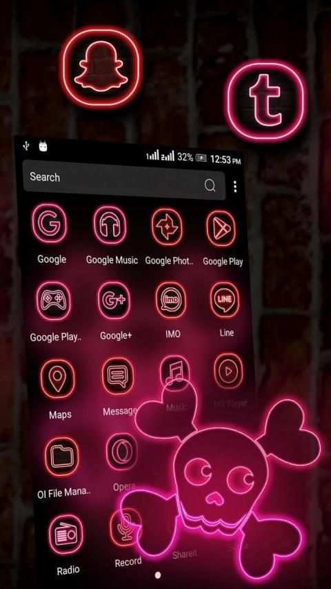✱ That it Enjoy The Neon Skull Launcher Theme.
