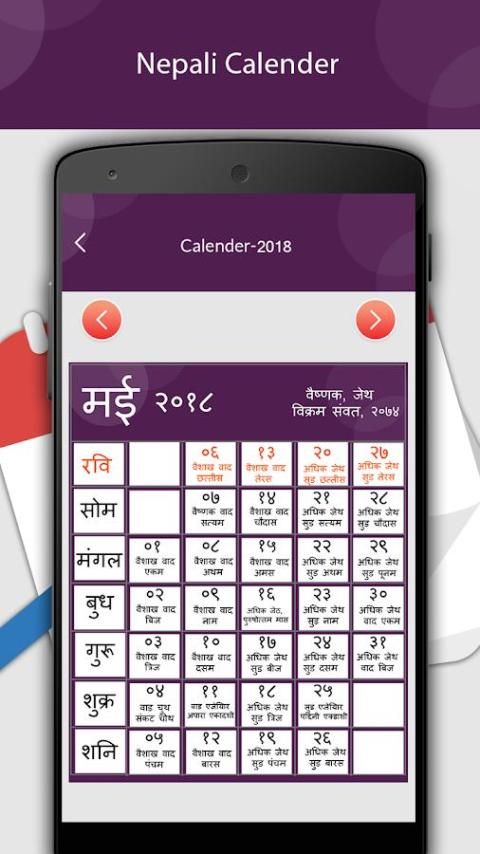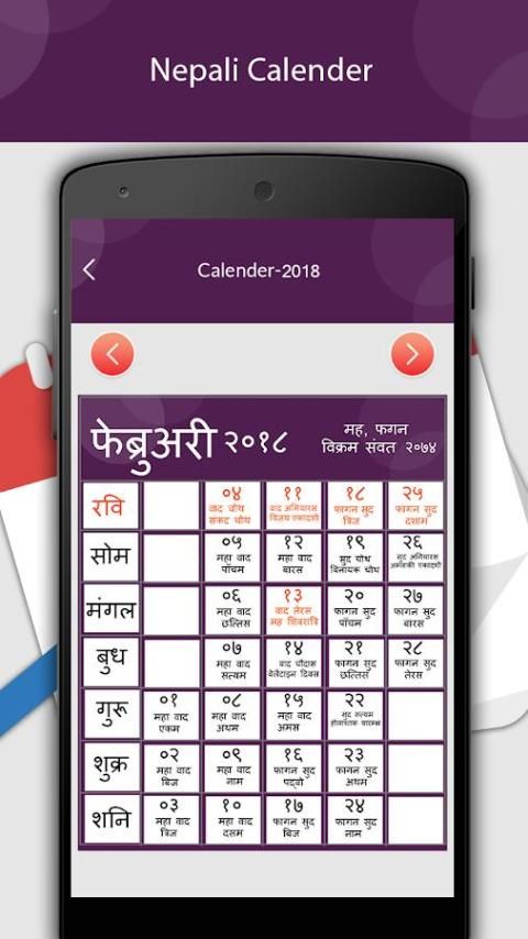 नेपाली कैलेंडर 2018 यह आसान है और उस के साथ उपयोग करने के लिए आप सभी apcoming त्योहारों के बारे में जानकारी मिल जाएगी आसान है।