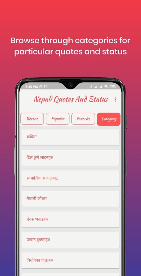 Nepali Quotes and Status app presents you with thousands of quotes and status. The app consists of following quotes and statuses.