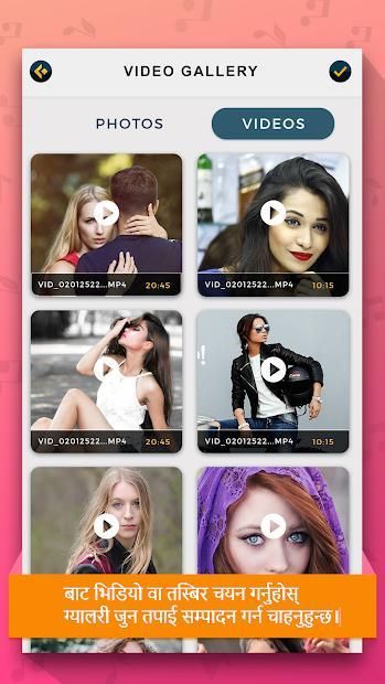 Our Nepali text on video feature provides video editor which allows edit video by adding text with cool fonts, animations, colors and music. Just make video of your moments and edit video in your own way to share all of your friends. It combines the power of words with videos to help you express, communicate, and share your moments in a much better and creative way.